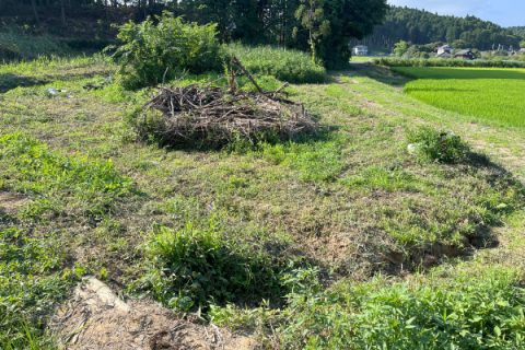 低木やアズマネザサの茂る荒廃地でしたが、草刈りと墨づくりを繰り返しながら育成畝を作りました。